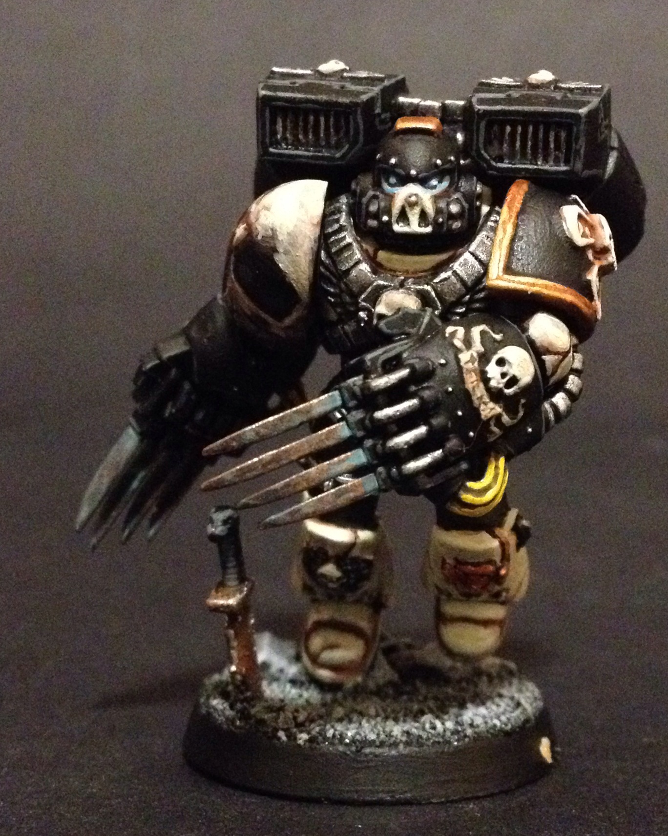 The fourth of my Mortifactors Vanguard Veterans has landed, and boy was he a toughie! Ever had one of those models that just everything goes wrong on? So many things, throughout painting this one seemed to go wrong. Going over edges, not getting my blending right, the point of my brush splitting… it all occurred. If it hadn’t been for the shoulder pads and claws looking quite nice, I wouldn’t have been very happy with this one at all.