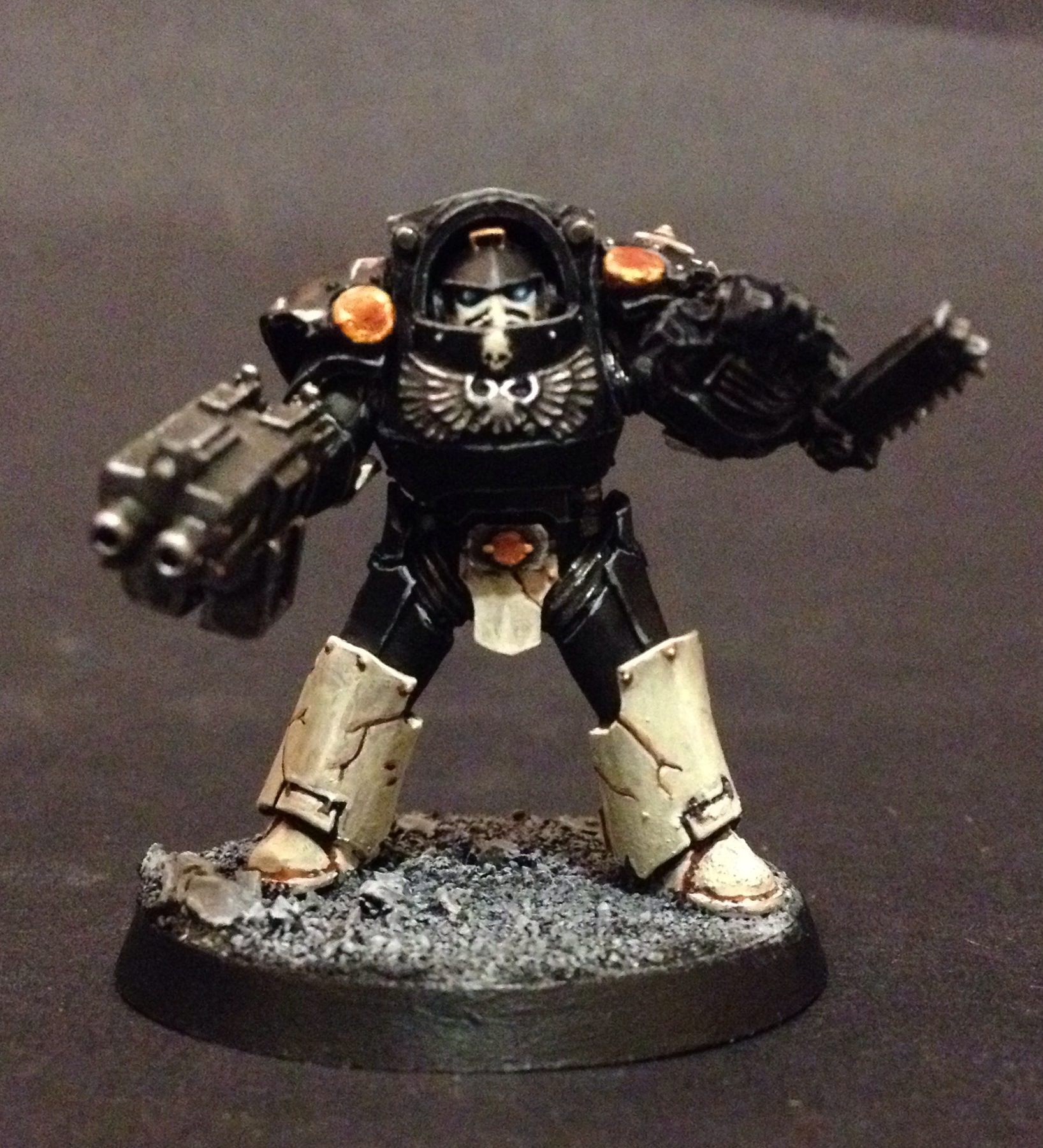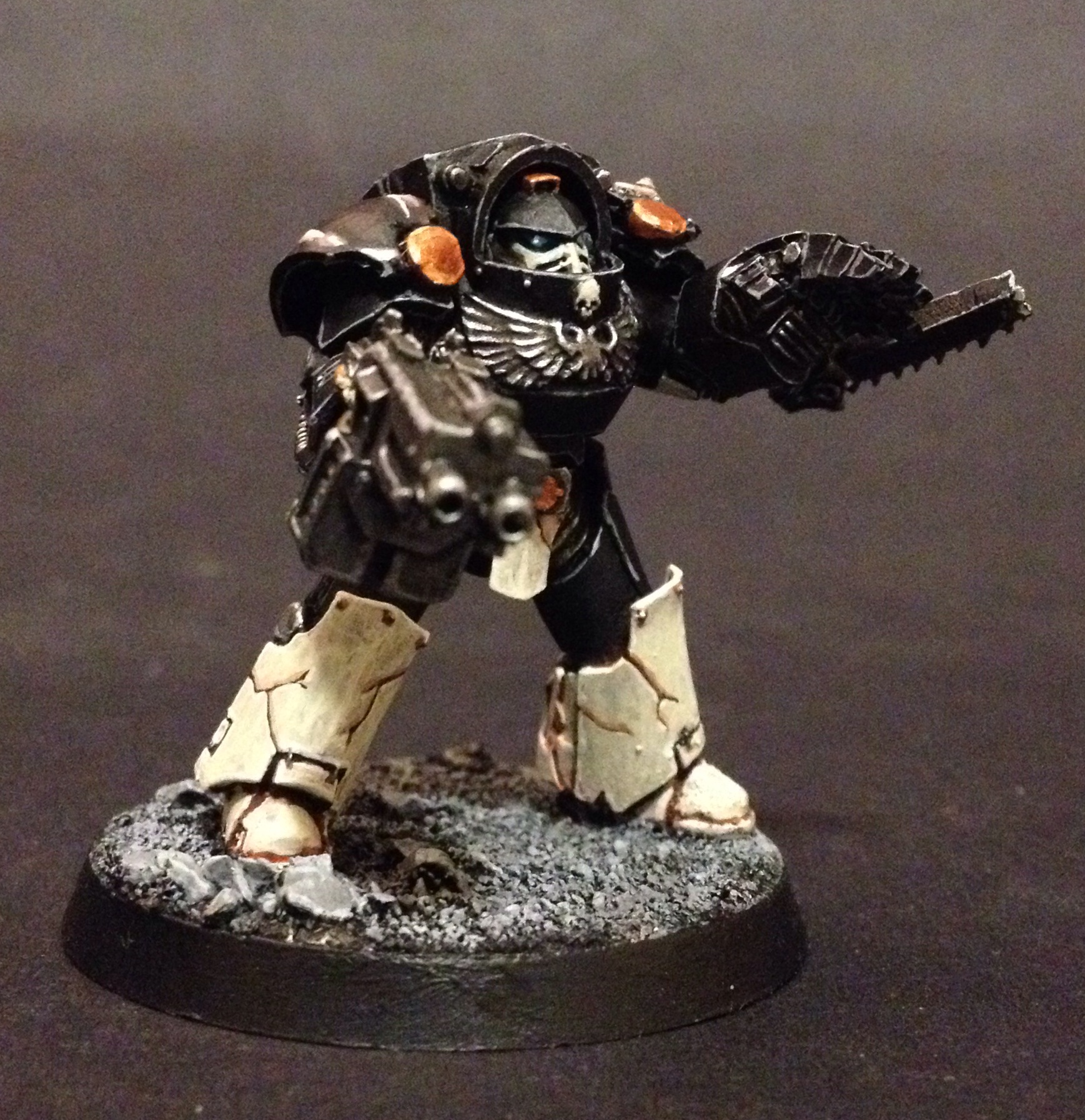 @VoltRon – that orange is actually what I’ve been calling ‘moody gold’ but my camera isn’t picking it up so well. I really wanted to have a couple of ‘signature metallics for the Mortifactors which is why that and the weathered bronze (which I’ve been calling ‘Posul bronze’ after their homeworld) are appearing throughout the army to tie the whole thing together. Really nice to read that it’s working! 🙂