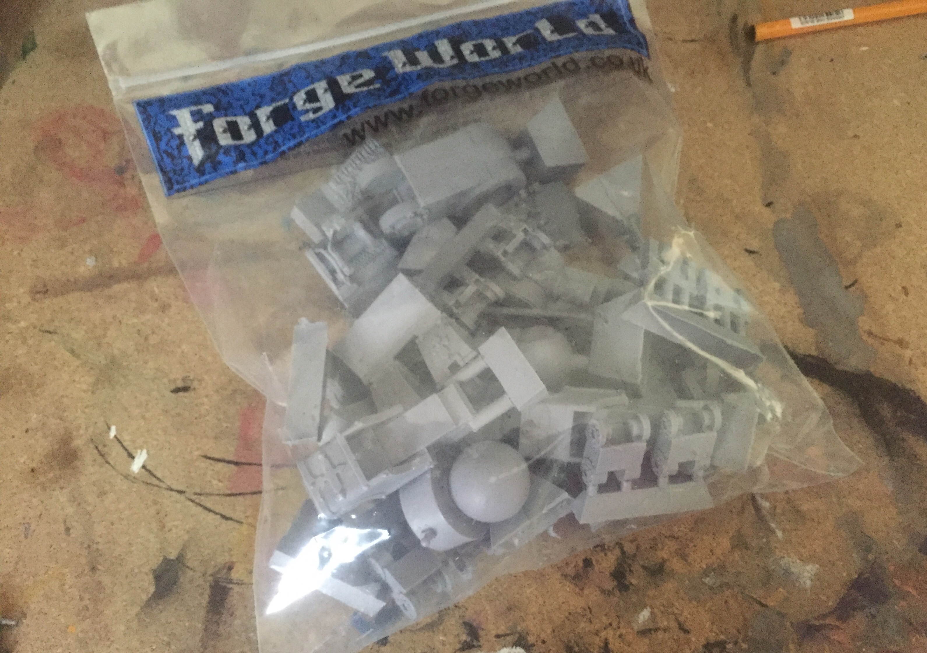 Yep. I did it. I took the plunge. I splurged and treated myself to one of Forge World’s Warhound Titans and yesterday it arrived (as I mentioned in my last post). I am excited and terrified, and feeling guilty, happy, a little sleepy, intrigued… it’s a roller-coaster of emotions. But most of all, I’m really looking forward to getting to grips with my most challenging hobby project to date. So, here are some more details, plans and thoughts.