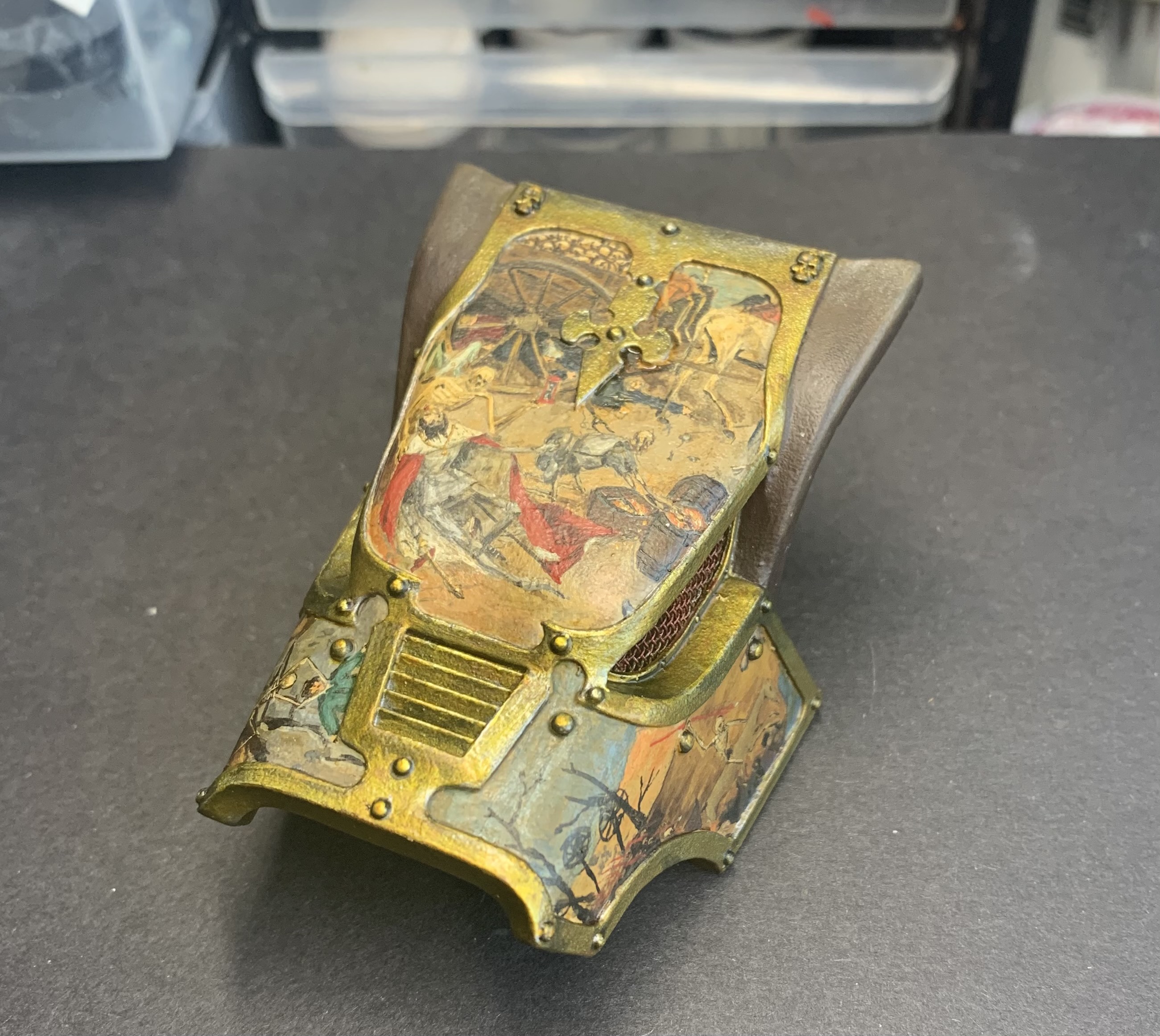 Yes, I still own it. No, it’s not much closer to being done, except for this head. It’s taken days and to be honest, I just want to get outside and enjoy some sunshine right now (which is beating down on Nottingham despite the fact it was snowing earlier). But hey, technically, this is the first plate of armour I actually finished on the titan! So we’re still on for that 2024 finish.
