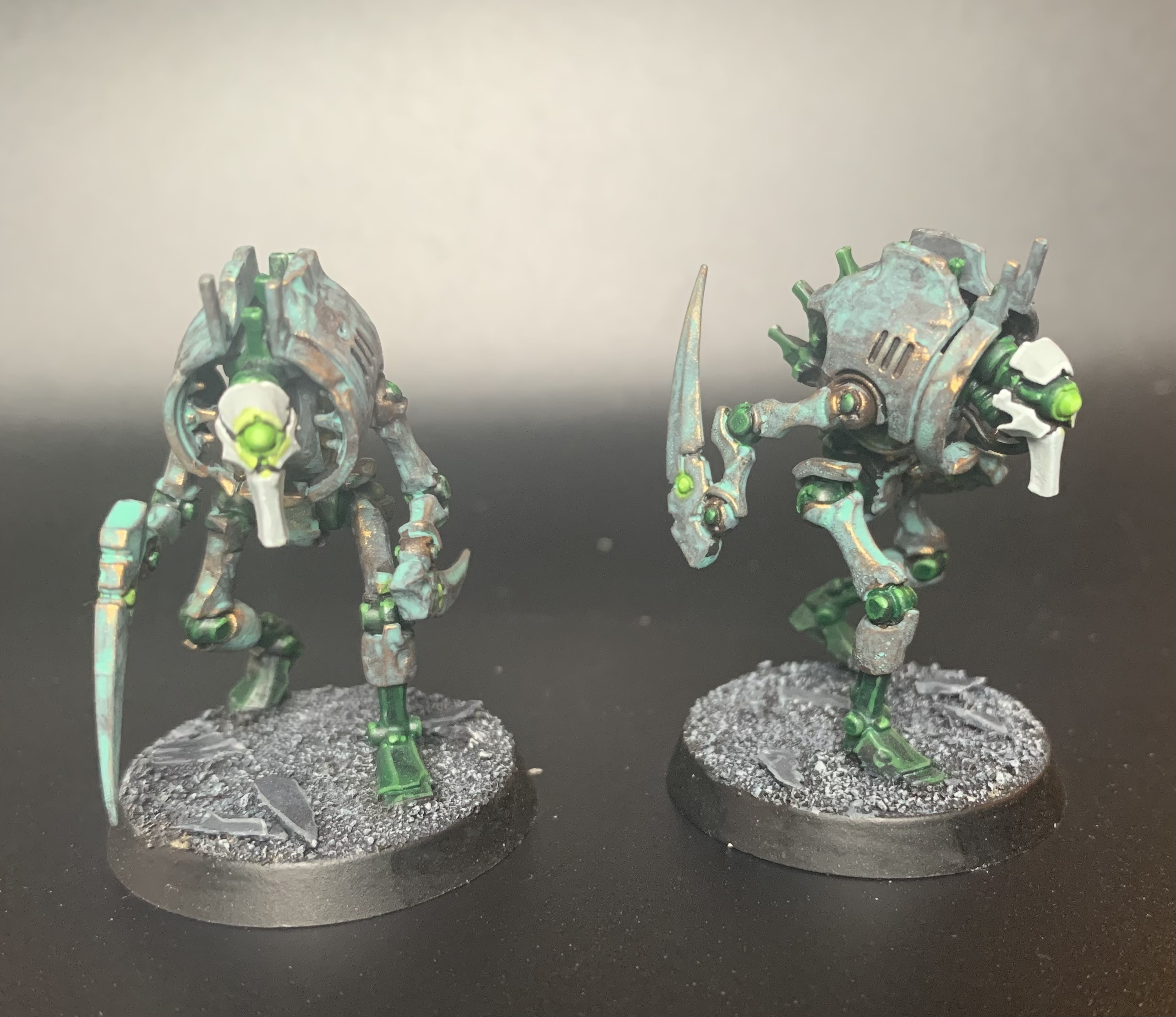 Ancient shuffling robot zombies can be surprisingly speedy it turns out and so I’ve got plenty of fast moving things in my army. Got the Floaty Ghost Bois as standard, and a nice little tarpit of six Murderbugs. And there are 5 Speedy Spear duders in there as well who are well good at smashing things up.