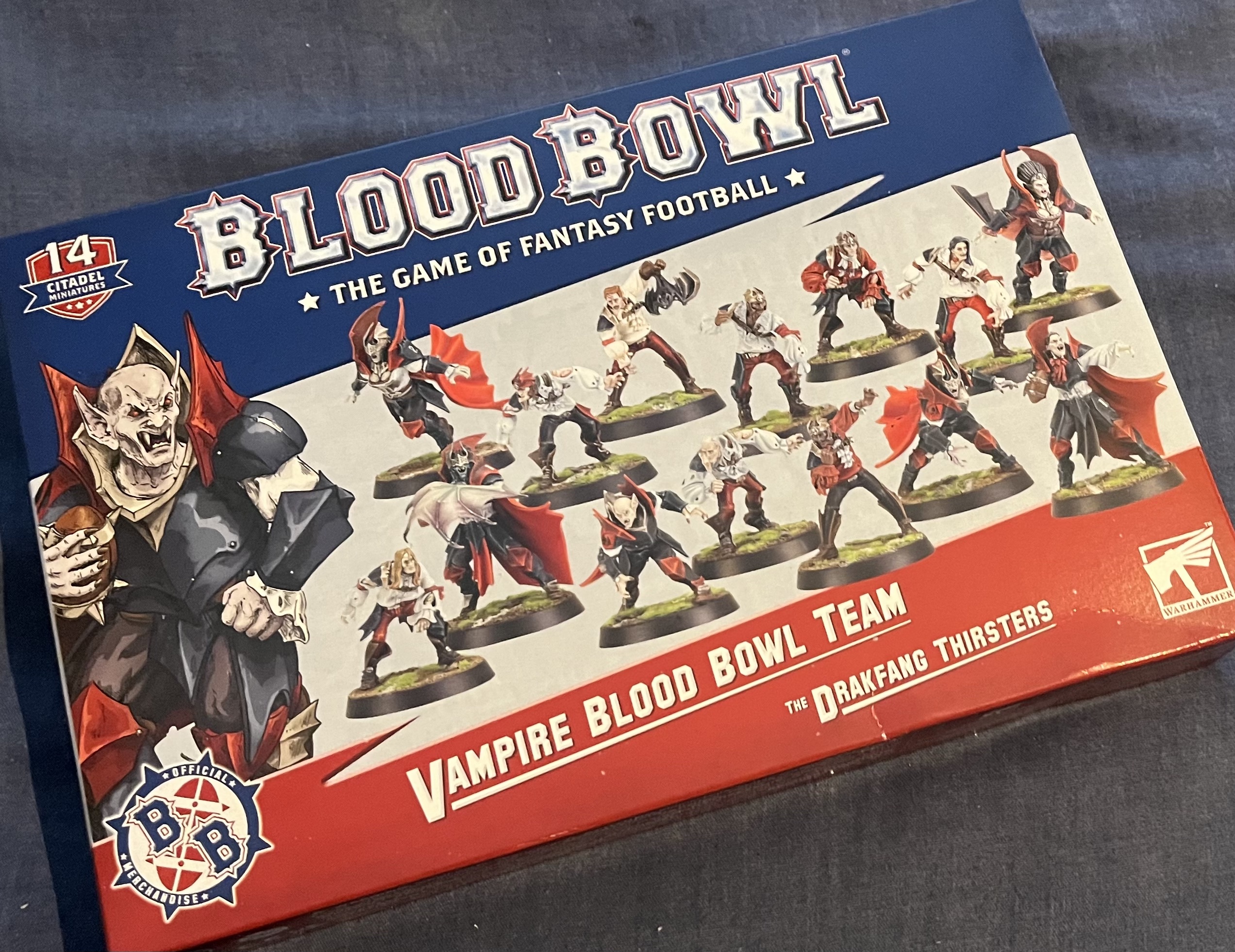 Hello sports fans! GW were kind enough to send me a box of the new Blood Bowl Vampire team to review (Fangs for that!) and while life as a new dad has left me with little time to work on the miniatures, I am writing this epistle to assure fellow veterans of the game that Blood Bowl Vampires just got a lot more interesting. Tempting even!