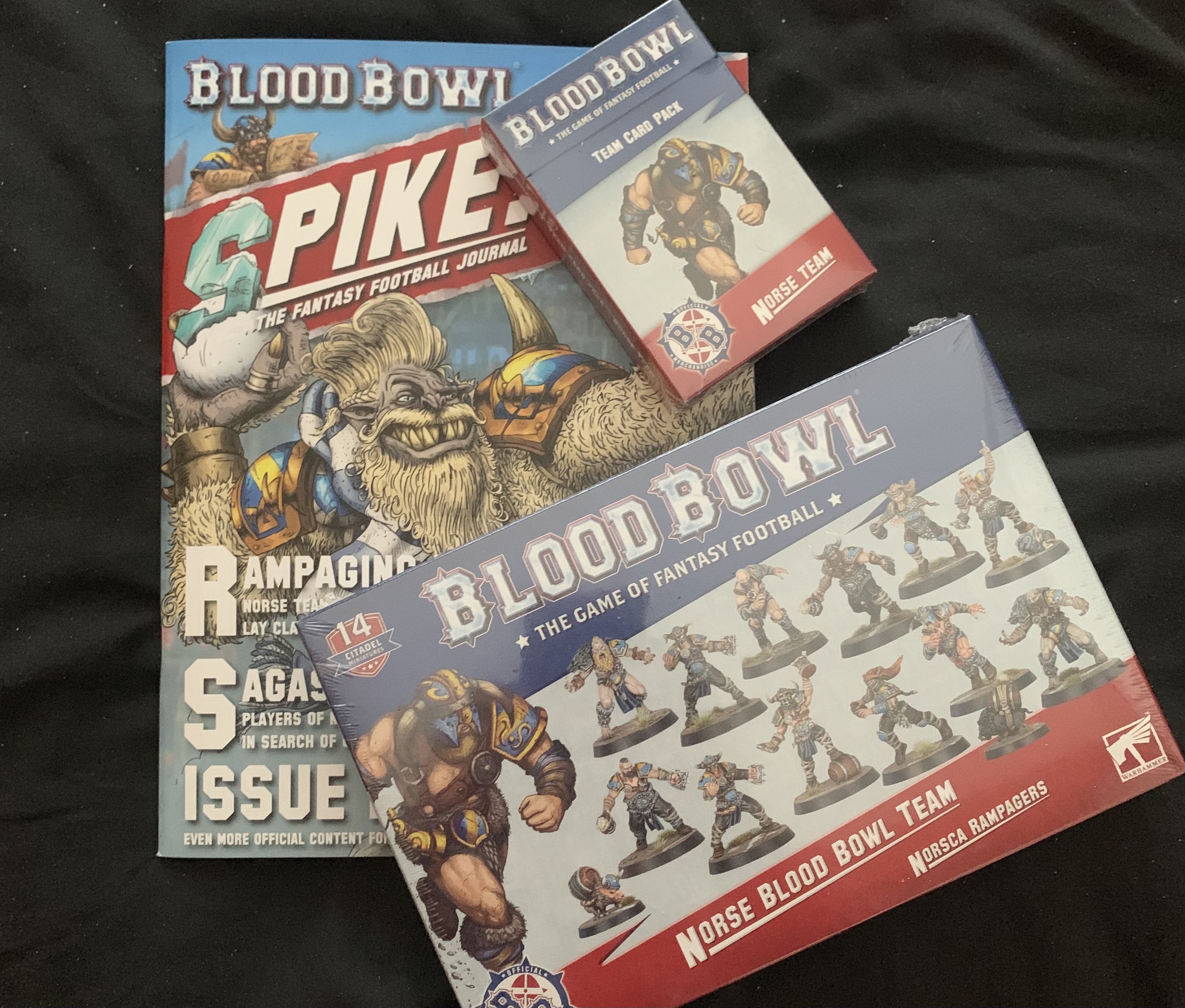 Hello sports fans!The gridiron has grown cold and the Wolf God is prowling the stands as the brand new Blood Bowl Norse team has arrived and GW were sporting enough to send me the new team and some assorted goodies to take a look at and tell you all about. So strap on your big foam finger, get your peanuts ready, and let’s take a proper gander at what might be my new favourite Blood Bowl team.